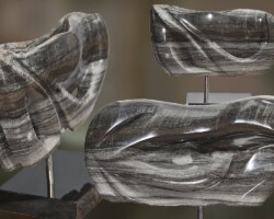 Bij zachtere steen ( vaak albast) bepaalt de reeds aanwezige vorm dikwijls de richting en is het resultaat ook het meest abstract. Eigenlijk geeft hij vorm aan begrippen als kracht, stroomlijn, transparantie, of (voor hem) aan schoonheid, met als resultaat een beeld met interessante lijnen en diepte.