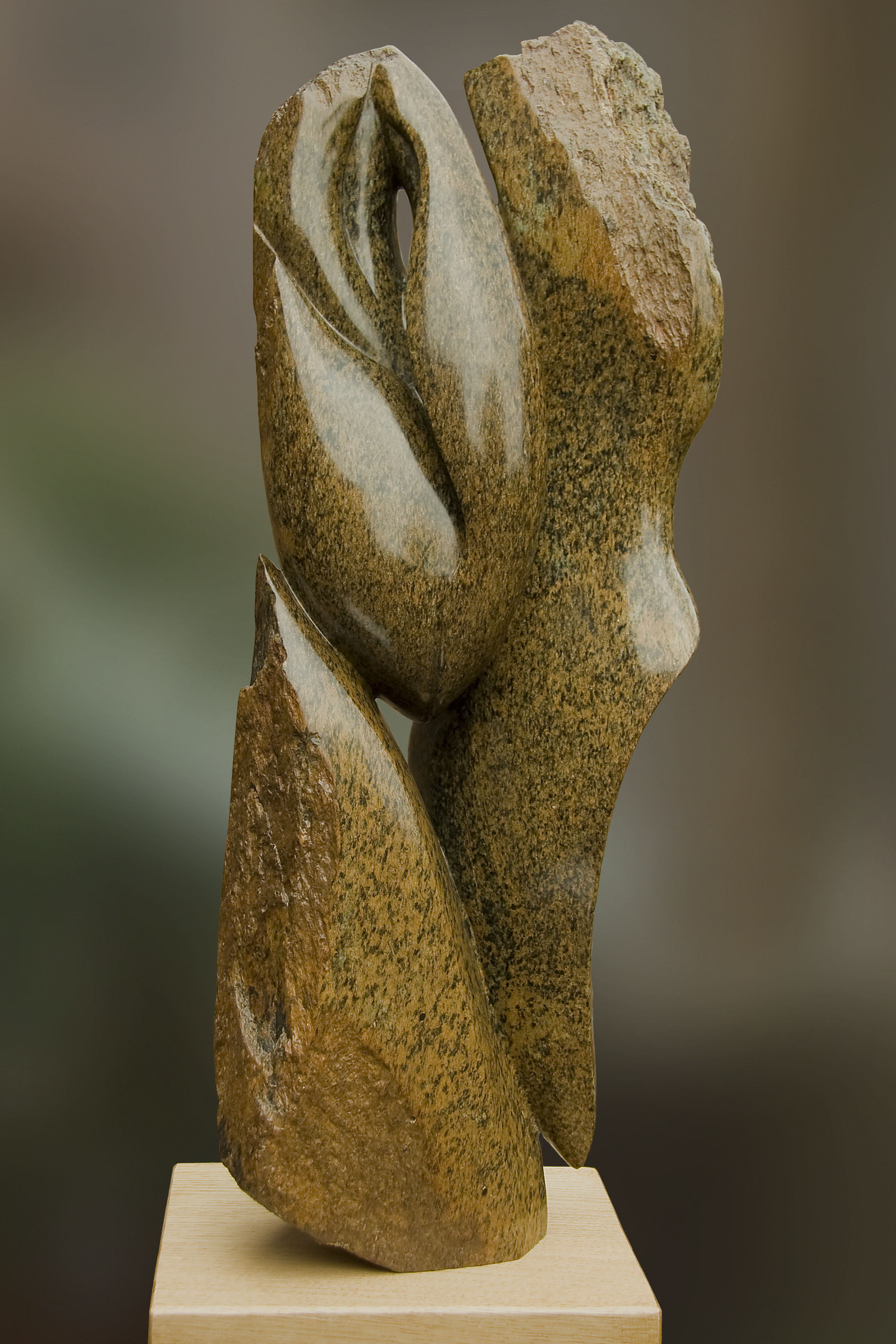 De echte passie is het omzetten van gedachten via handwerk, (kappen, slijpen, schuren en boetseren) naar een sculptuur.